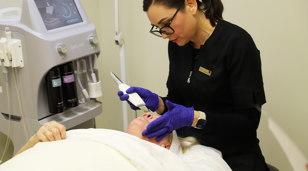 Le traitement Bela MD débute par une phase initiale de démaquillage et nettoyage de la peau. Ensuite, notre technicienne médicoesthétique procède à une exfoliation de la couche superficielle de la peau à l’aide d’un embout en diamant.