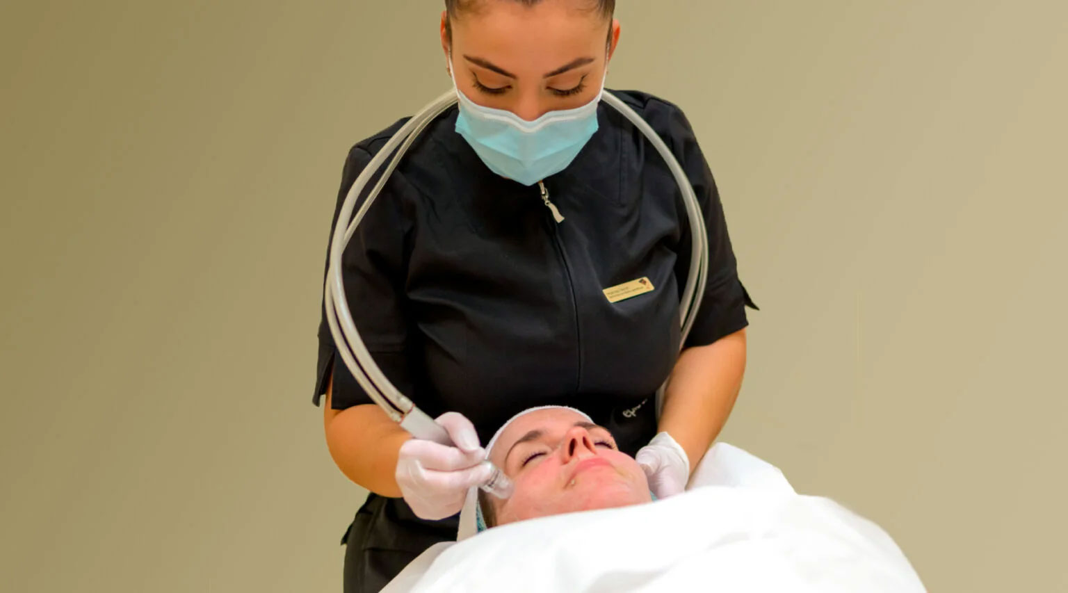 Le traitement débute par le nettoyage de la peau avec le lait pur nettoyant Medicart. Deux à trois passages d’un jet de microcristaux sont effectués afin de déloger les cellules mortes avec une attention particulière portée aux endroits nécessitant une exfoliation en profondeur. La microdermabrasion procure un léger inconfort comparable à une sensation de sable projeté sur la peau combinée à un effet de succion. Pour conclure, la technicienne applique le masque apaisant Medicart suivi d’une routine complète anti-âge pour un maximum de confort.